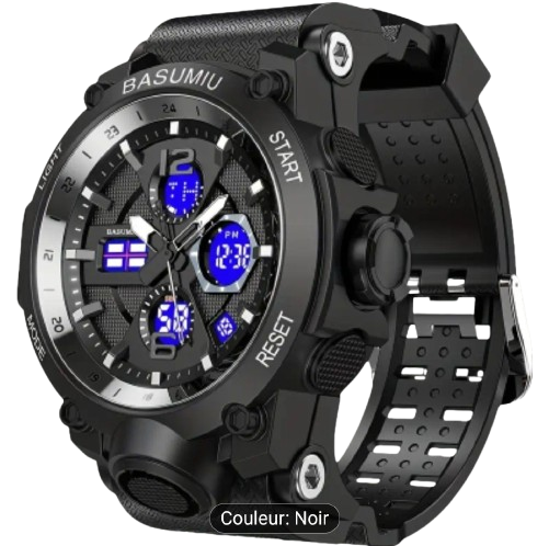montre militaire étanche, mouvement électronique à double affichage, avec détail lumineux, boîtier en PC, bracelet en TPU